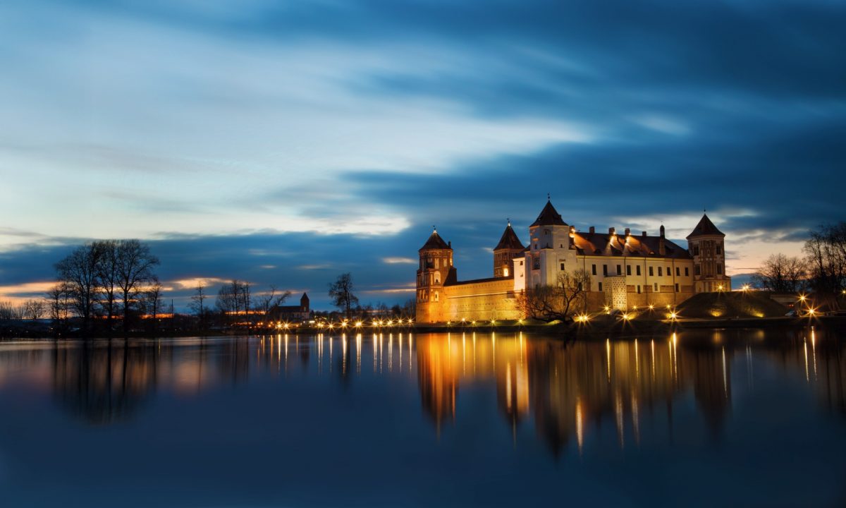 A visit to Mir is usually complemented by a trip to Nesvizh, located just half an hour away. This charming little town, with its Jesuit-built Farny Church, landscaped parks, and many historic buildings, is famous for its luxurious 16th-century Baroque castle, which also belonged to the Radziwiłłs, the wealthiest family of the Grand Duchy of Lithuania. The castle served both residential and defensive purposes, so its stern towers, ramparts, and deep moat combine here with the splendor of interior decorations. Like Mir, this castle is protected by UNESCO. Reopened after restoration in 2012, it is now part of the National Historical and Cultural Museum-Reserve. And only in winter — from November until the end of February — can the Nesvizh Castle be visited on a night tour, conducted by lantern light!